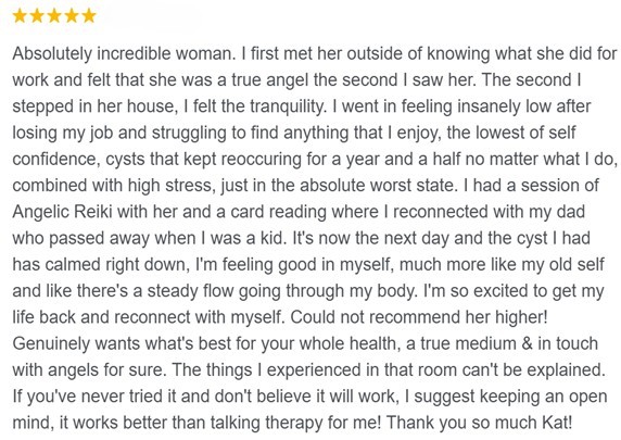 My offerings include Reiki, Seichem, Crystal Healing, Angel Card Readings, CBT Hypnotherapy*, and Angel Reiki. For a detailed overview of each service I provide, and how it can benefit you, please click here.